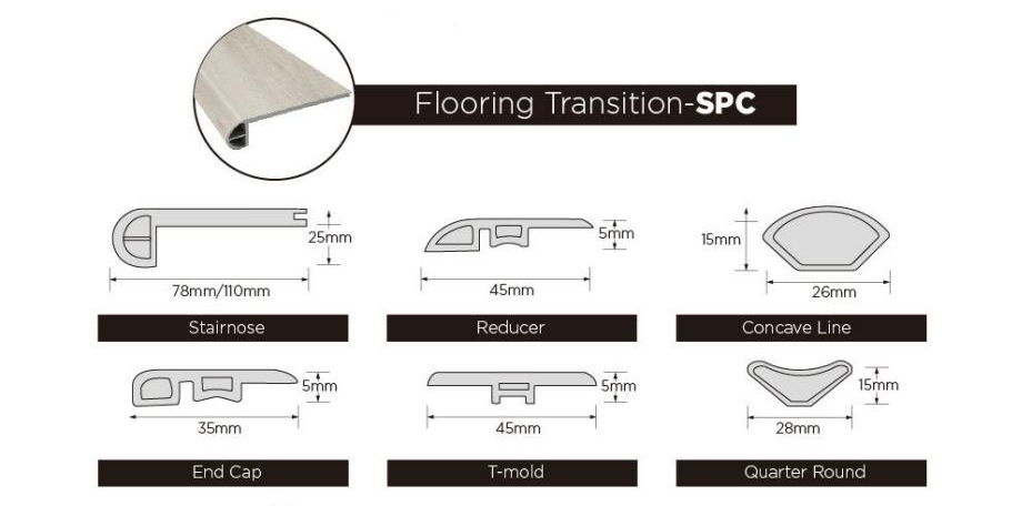 SPC thickness: 4mm, 4.5mm, 5mm, 5.5mm, 6mm, 6.5mm, 7mm